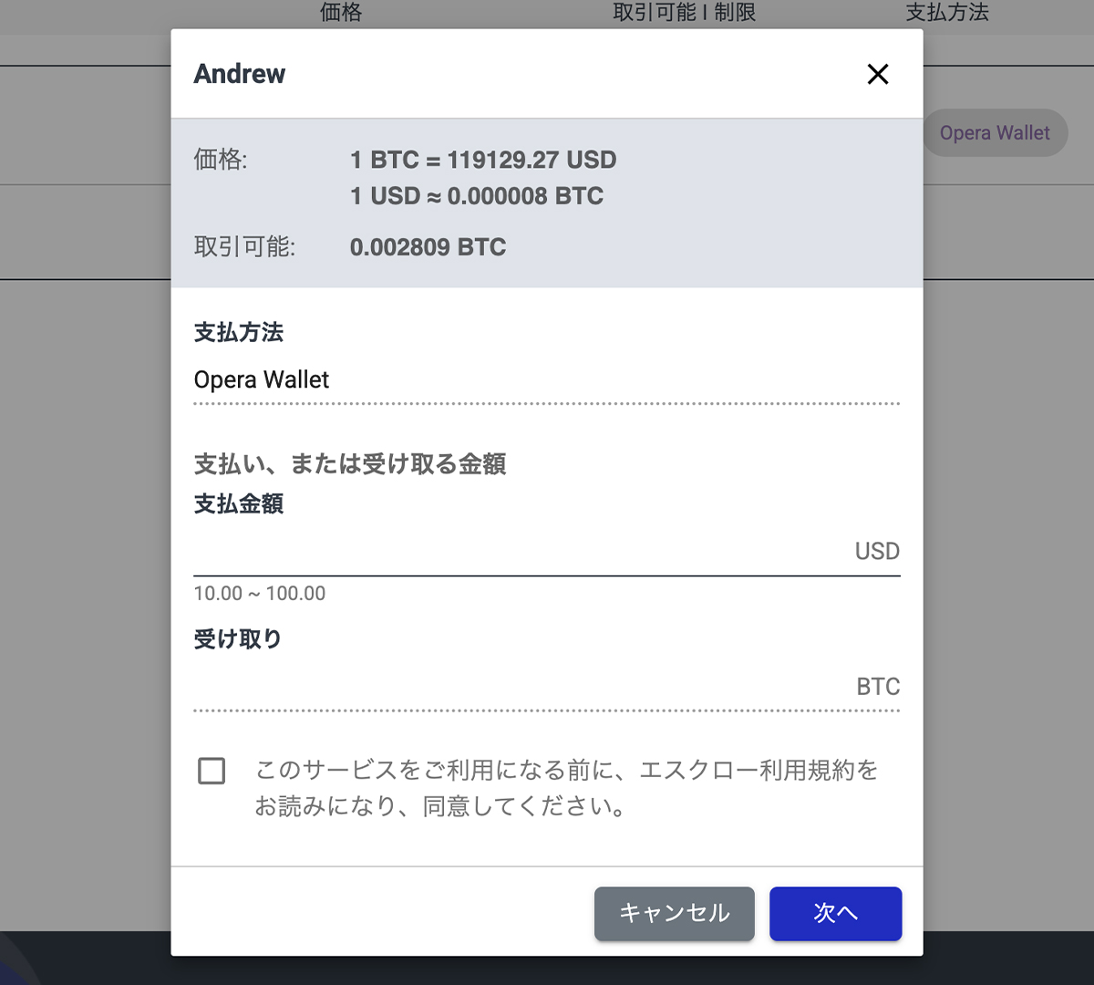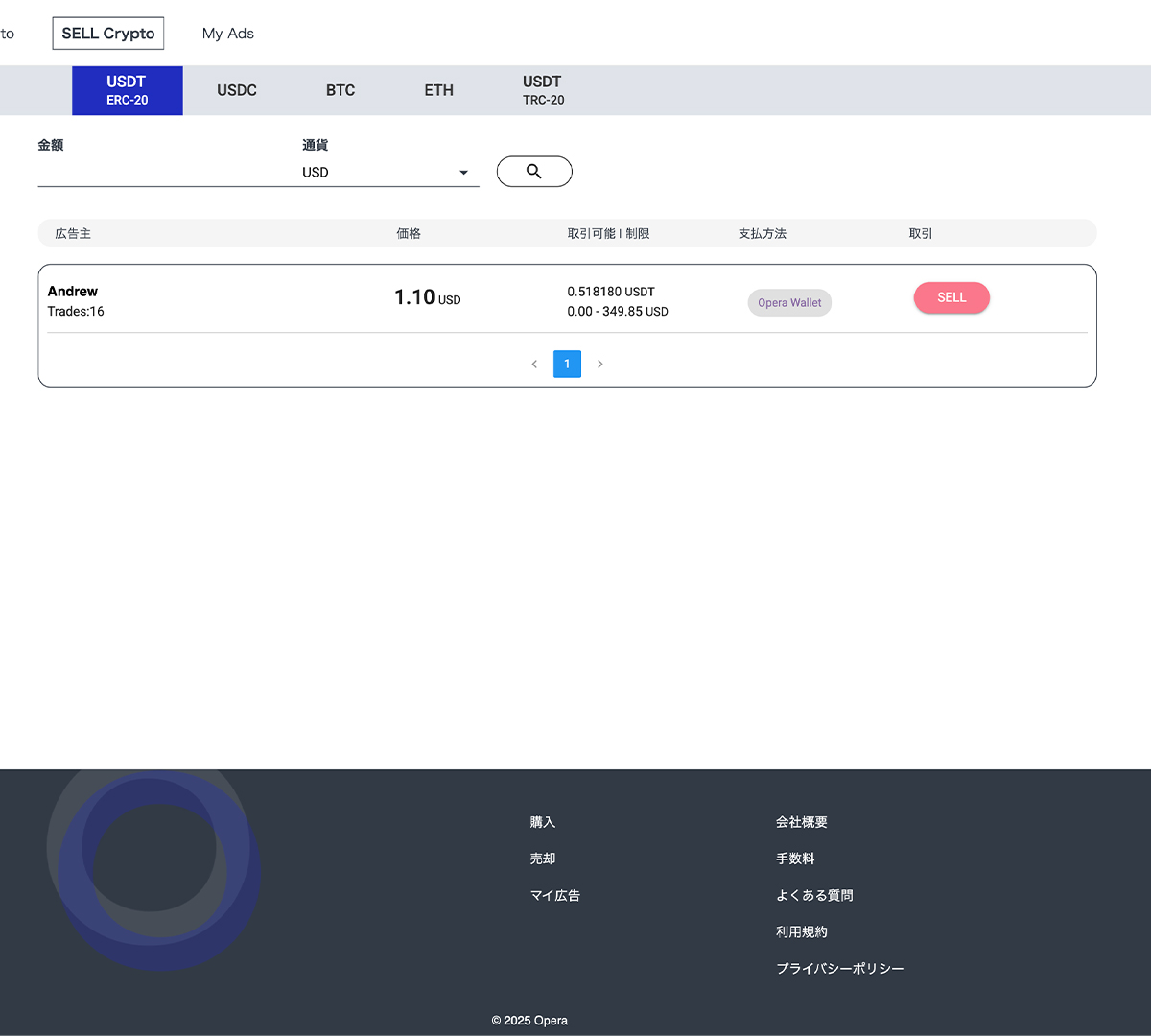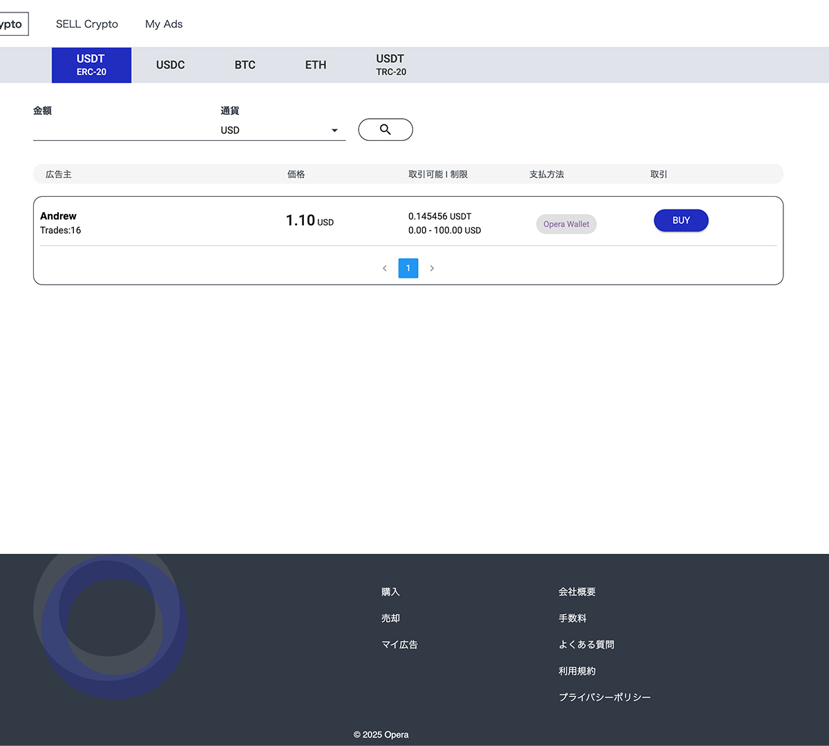 暗号資産を法定通貨に売却できるP2Pプラットフォームは、Operaウォレットを開設すると利用することができます。