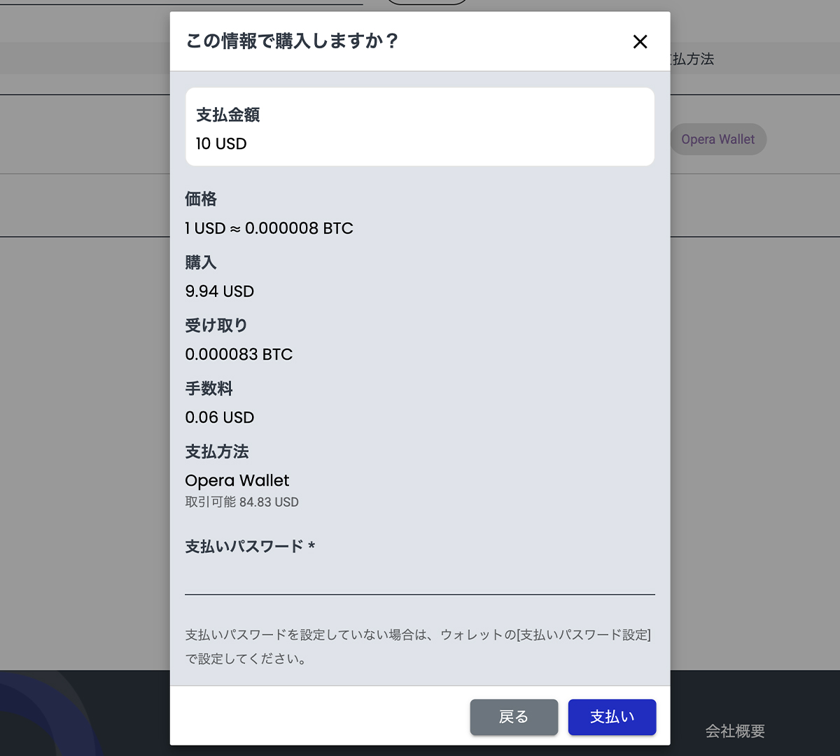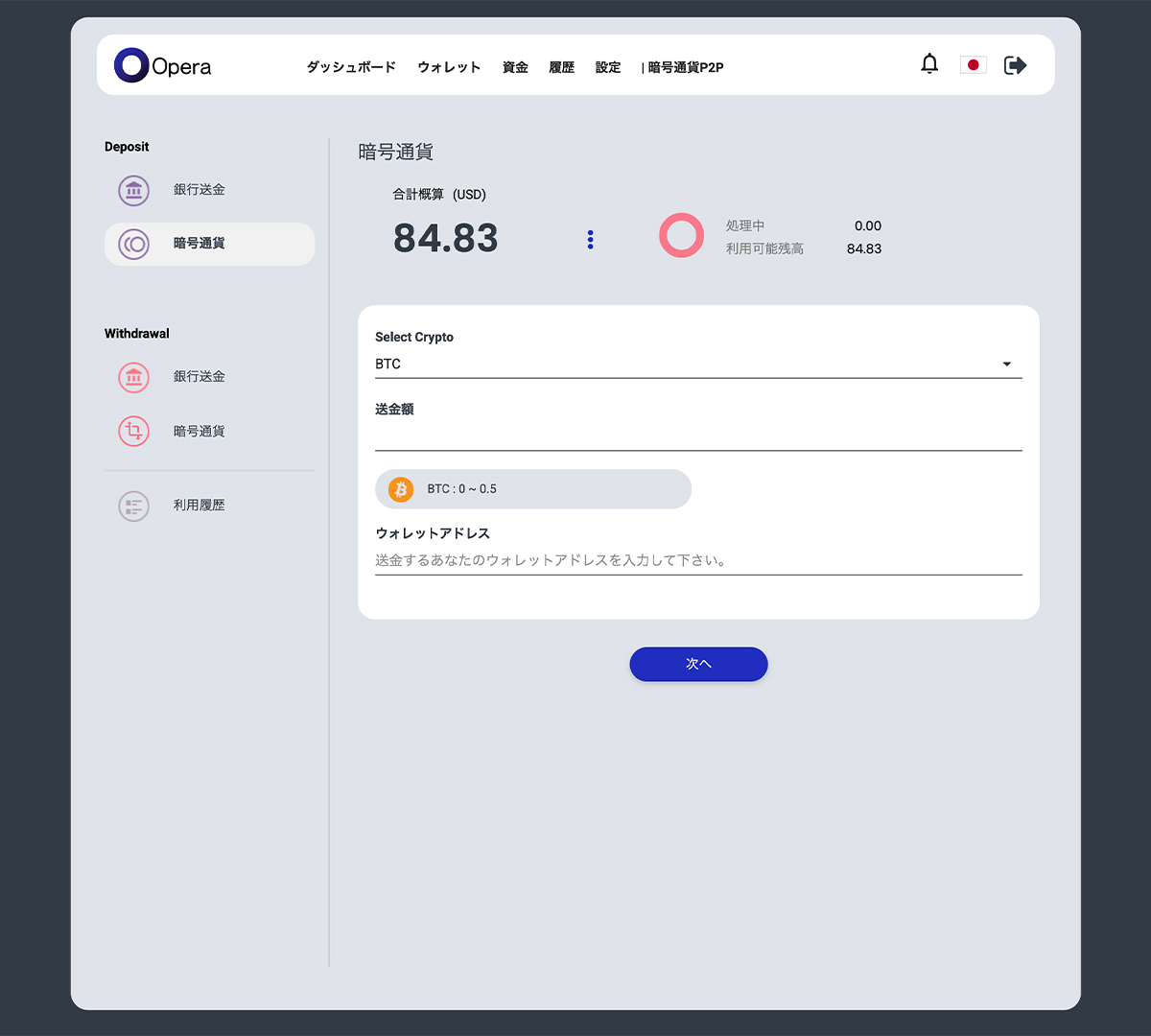 暗号資産をOperaウォレットにデポジットします。