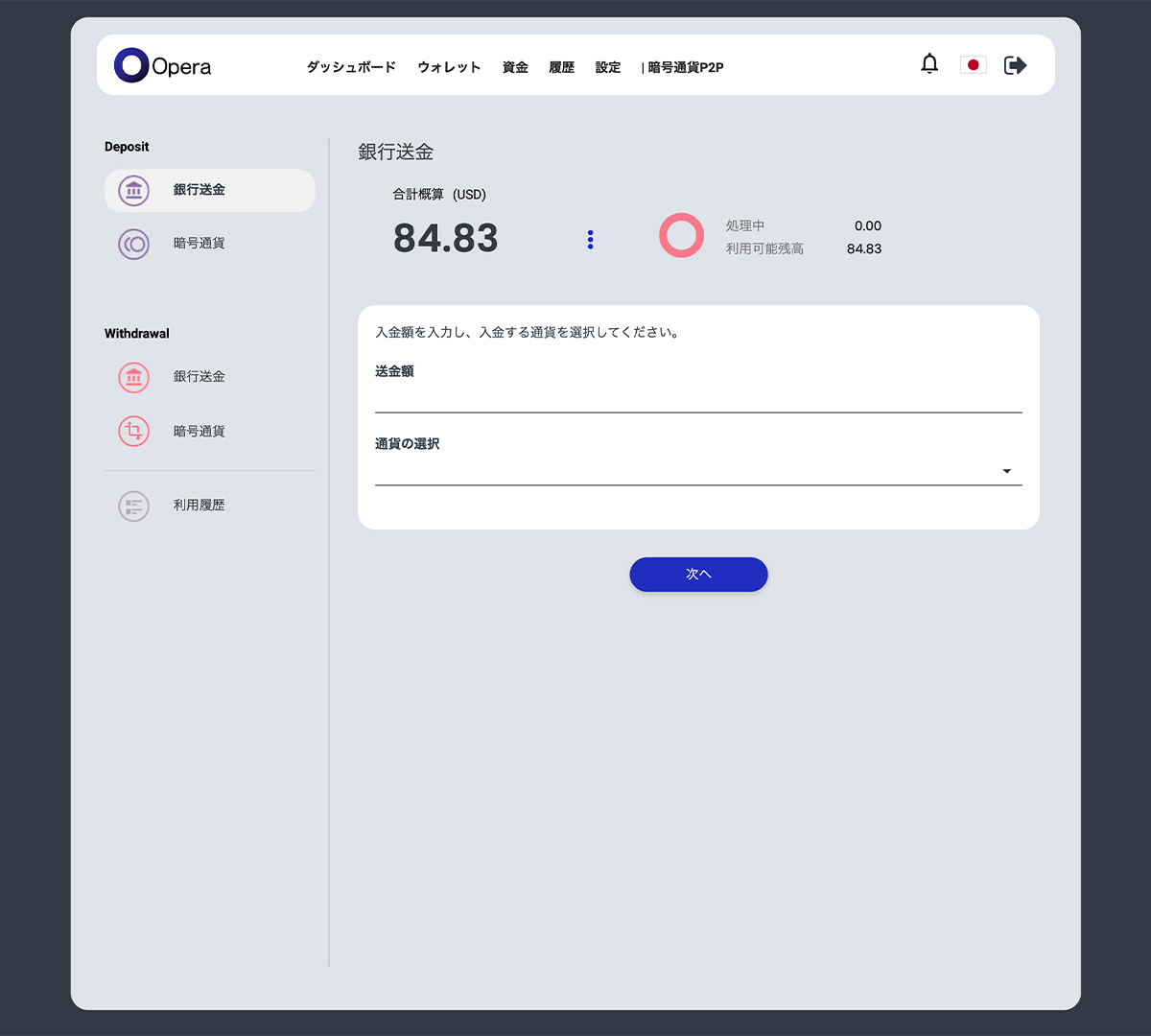資金をOperaウォレットにデポジットします。