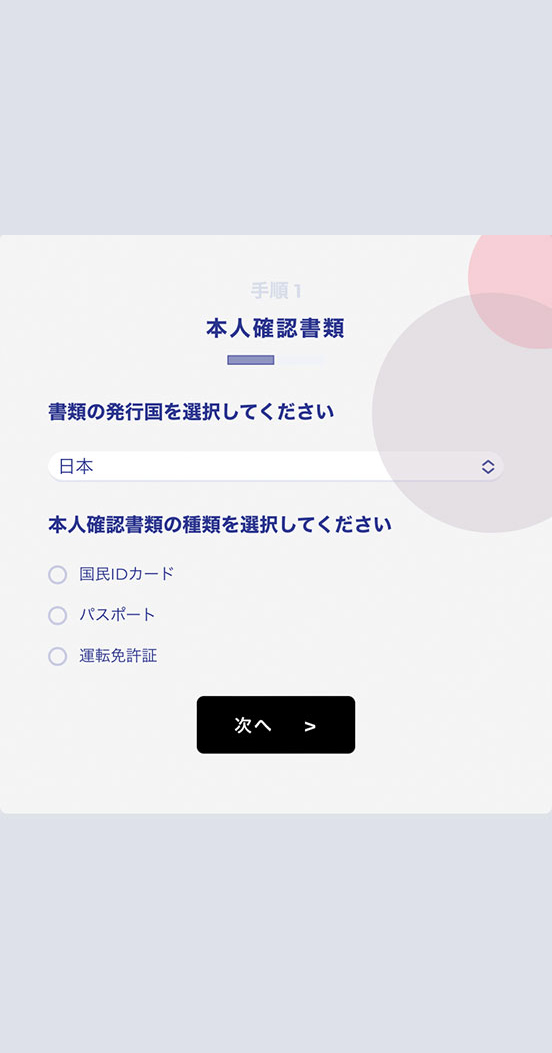 本人確認(eKYC)で提出する本人証明書類は、以下のうち1つを画面の指示に従って撮影して提出します。